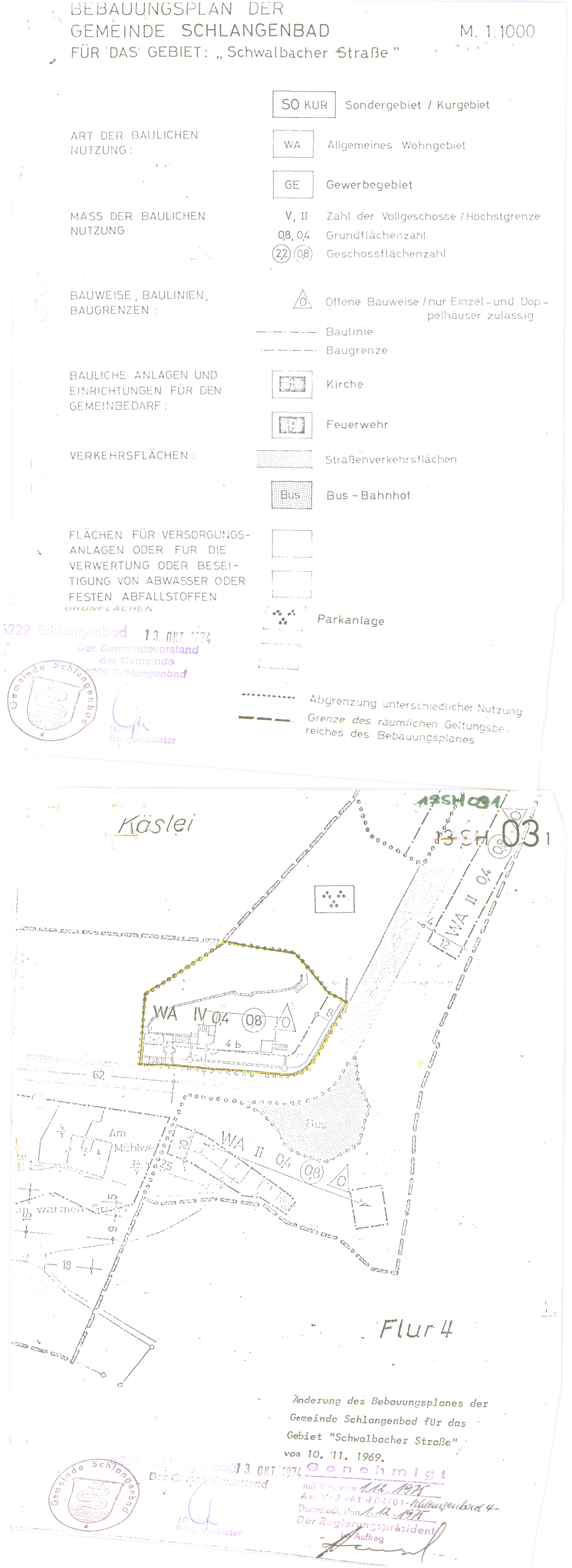 | Bebauungsplan ohne Bausatzung SH 03.0 "Schwalbacher Straße" (01.04.1970), geändert 01.12.1975: |